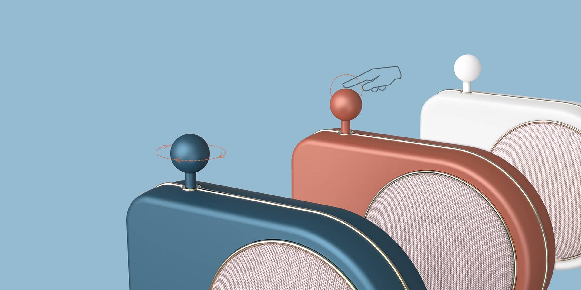 Our signature lollipop knob combines retro flair with modern function—rotate to adjust volume, click to switch modes. Simple and satisfying.