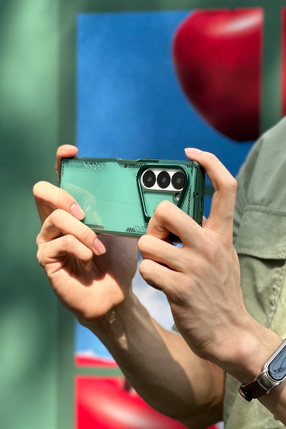 Functions as both lens protector and lifestyle cornerstone. Features scratch-resistant, dust-proof properties with a dual-card buckle design ensuring secure closure.