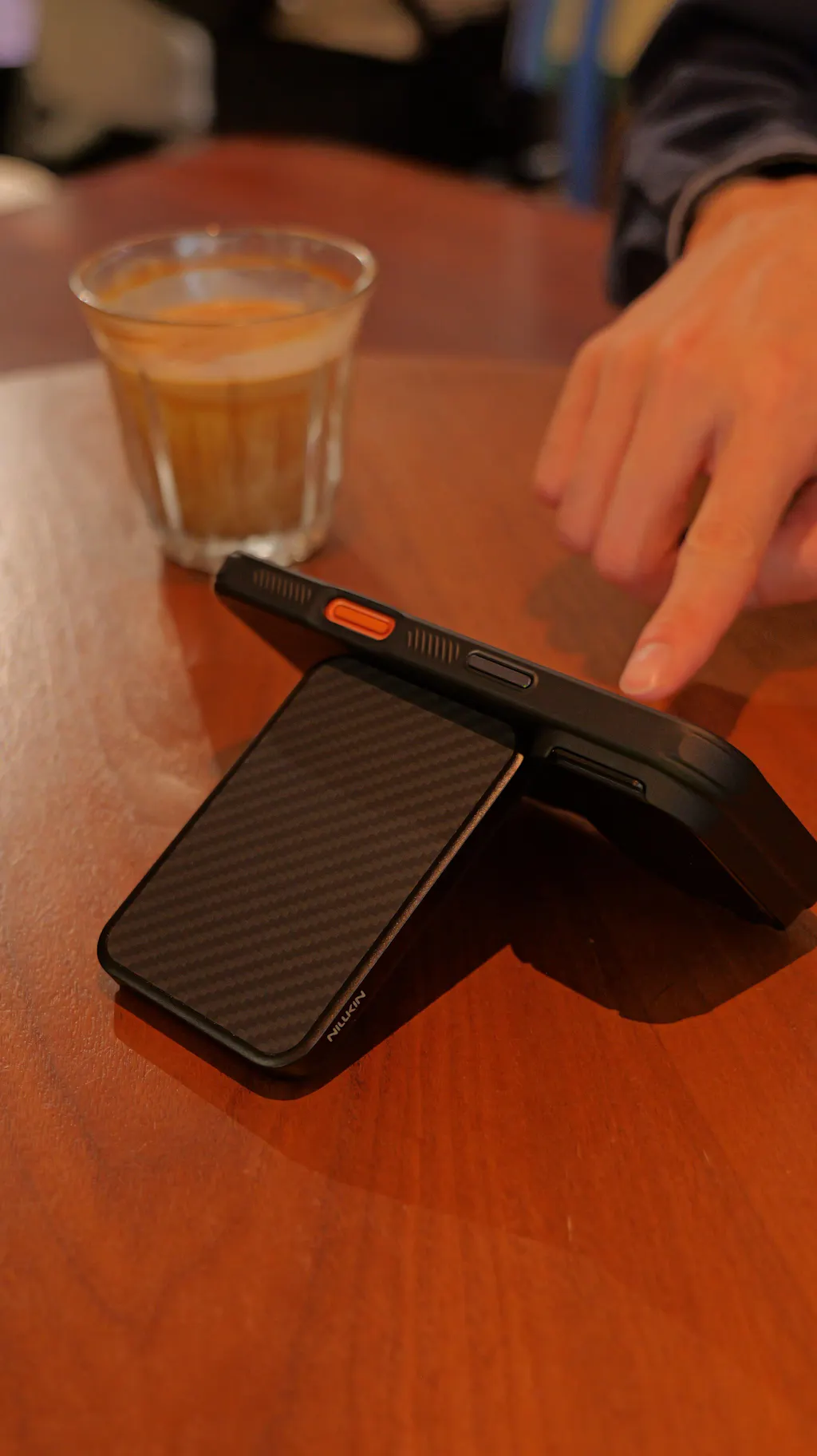 No. Remove the wallet before using chargers, mounts, or stands.