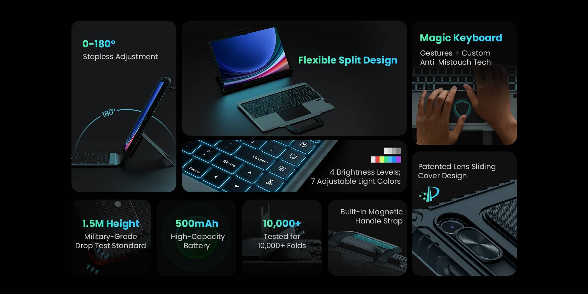 Carry Go Draagbare Handgreep Verlichte Toetsenbordhoes (Black) voor Galaxy Tablet-serie