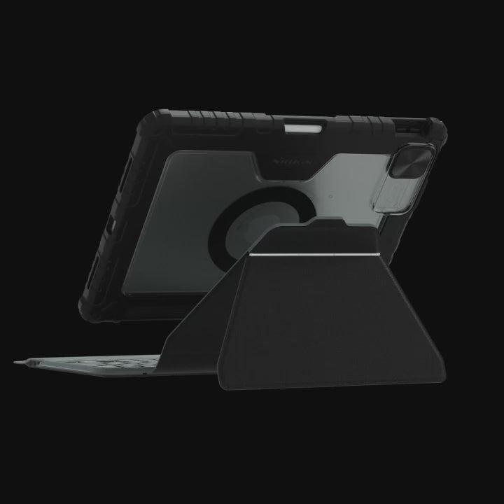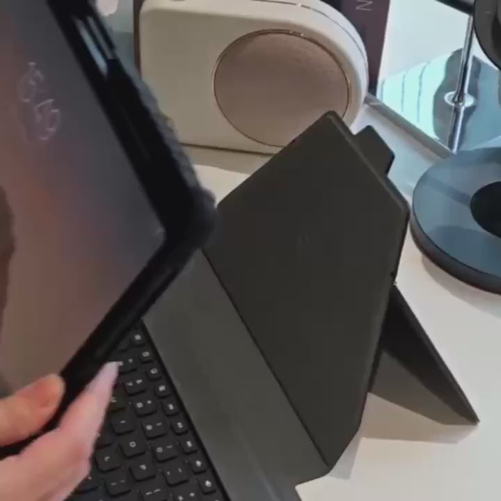 This keyboard case provides the ultimate combination of functionality and protection. Its durable keyboard base, precisely formed hardbound case, and sliding camera cover offer unparalleled safeguarding and privacy for your iPad during use.