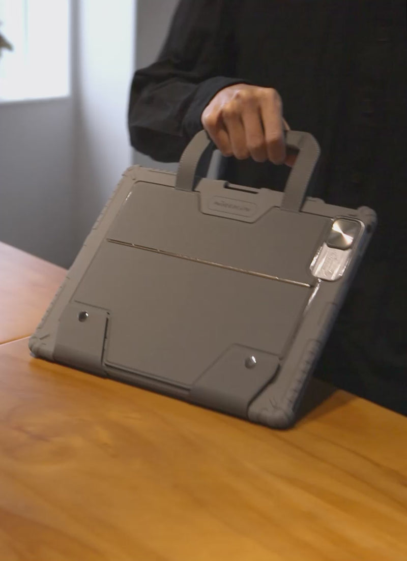 The minimalist iPad case with a magnetic handle makes carrying your hefty Magic Keyboard easier while also adding some protection, ensuring your device stays safe on the go.