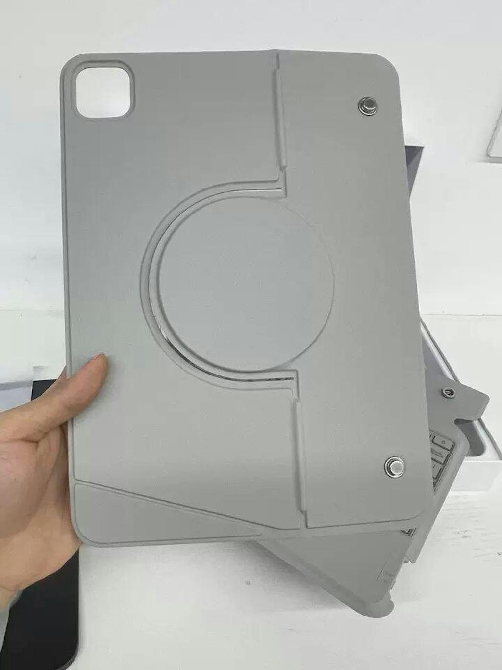 It doesn’t include a full protective case, but the backplate and cover edges are raised above the iPad surface.